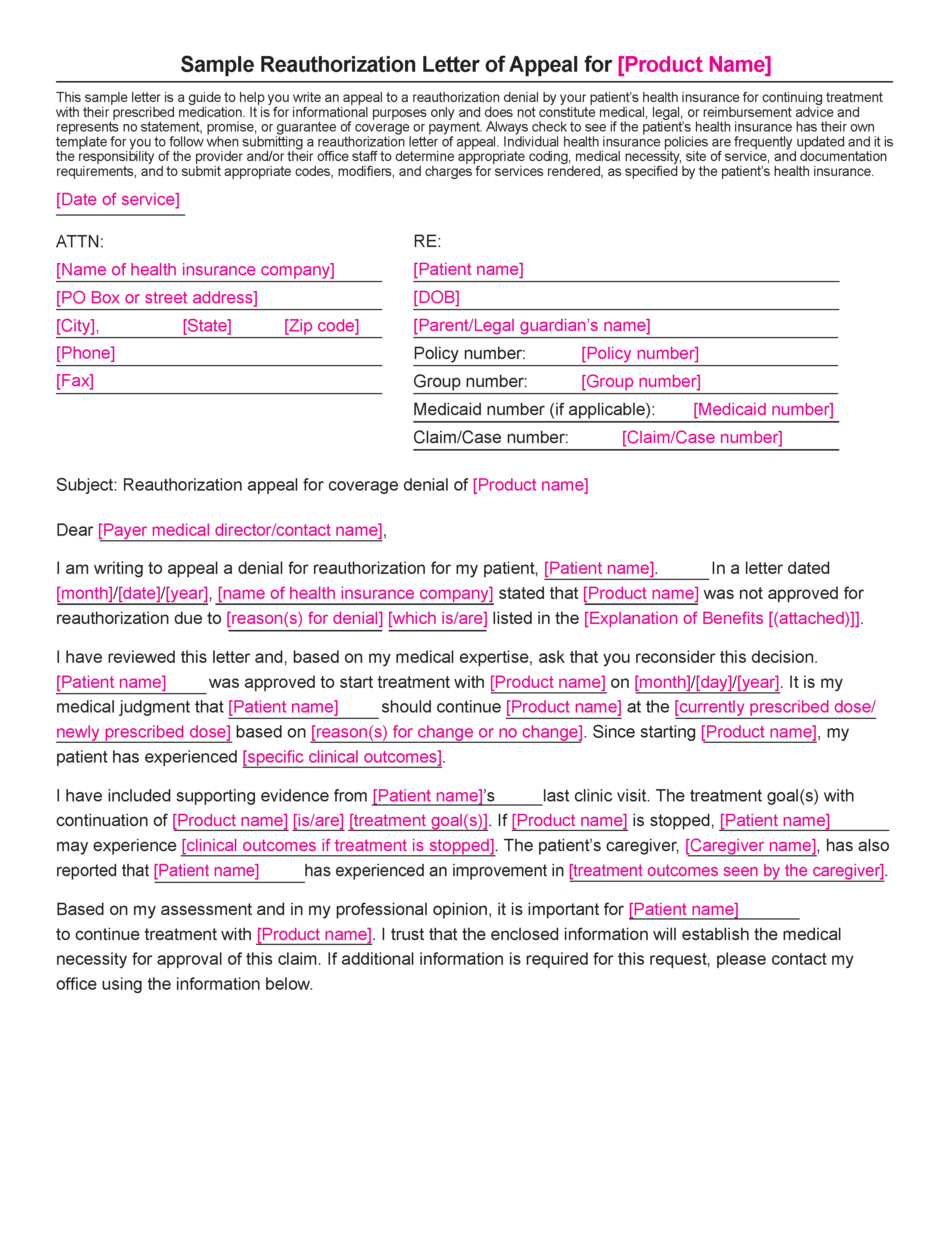 A letter template to help support your clinical rationale for treatment.